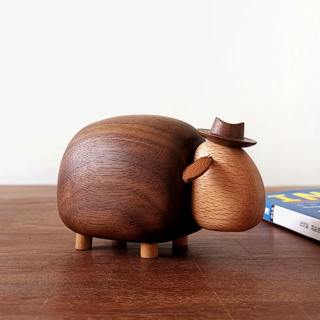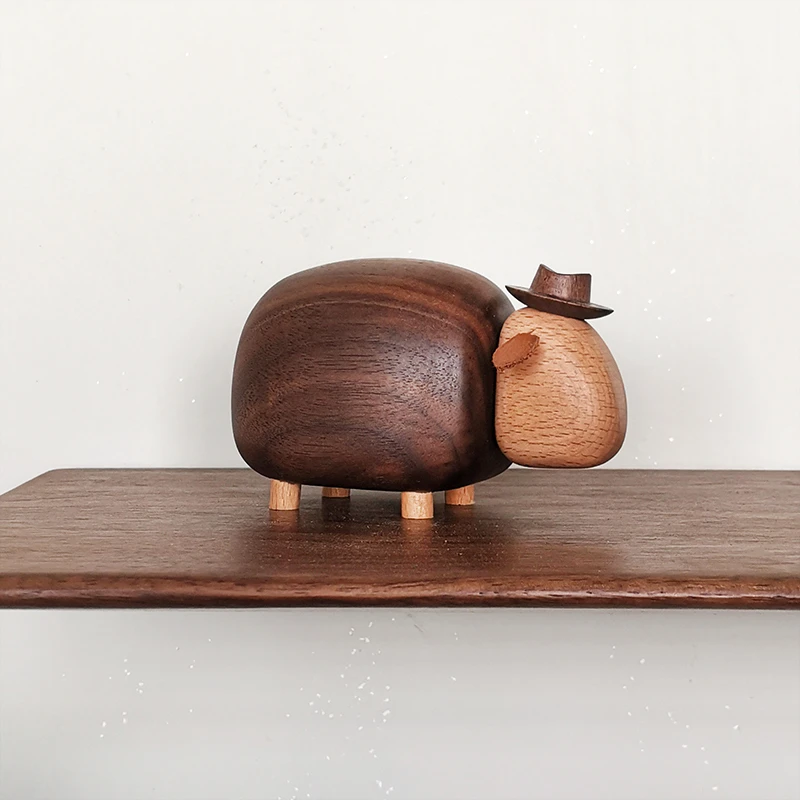 Cartoon Sheep Home Decor – Black Walnut Wood