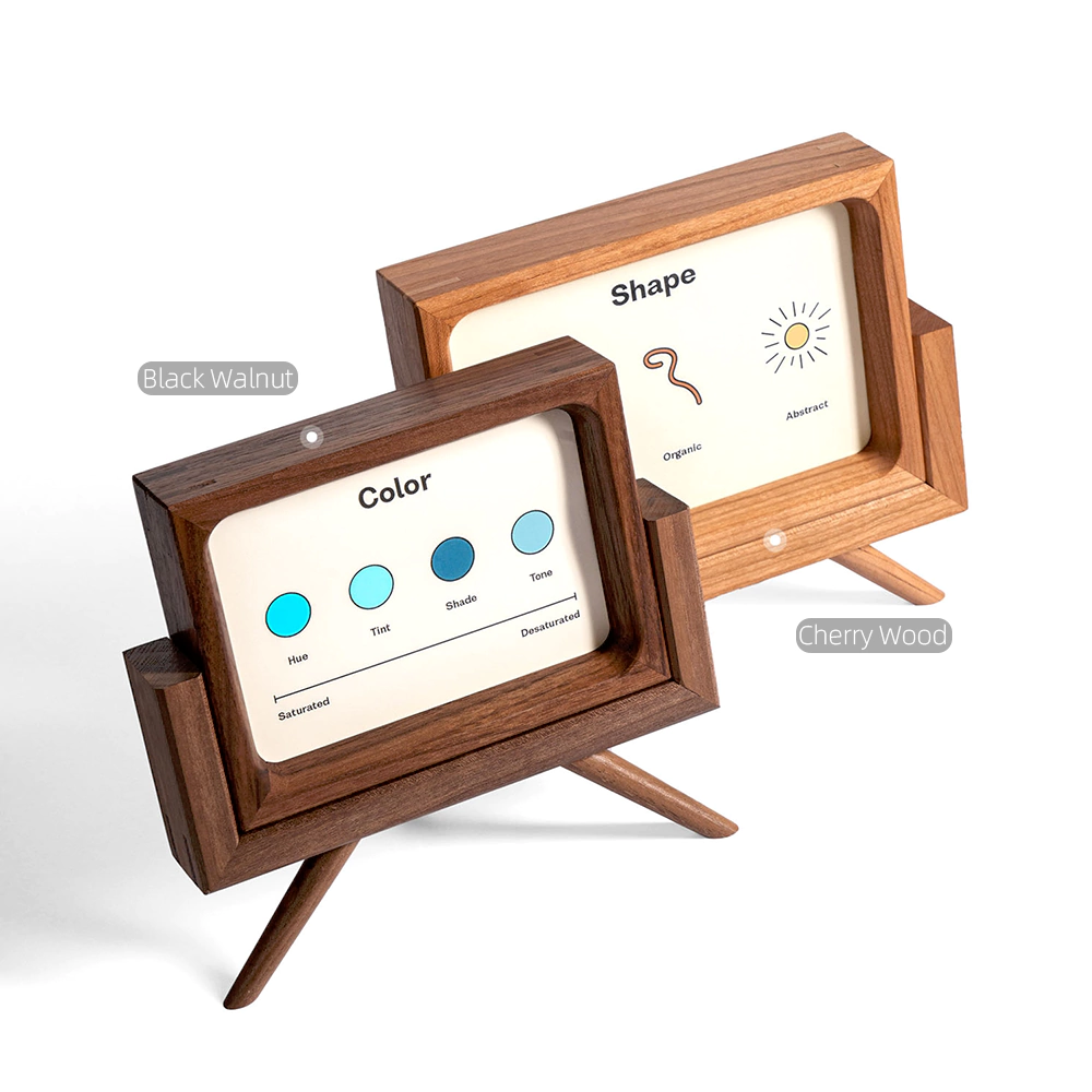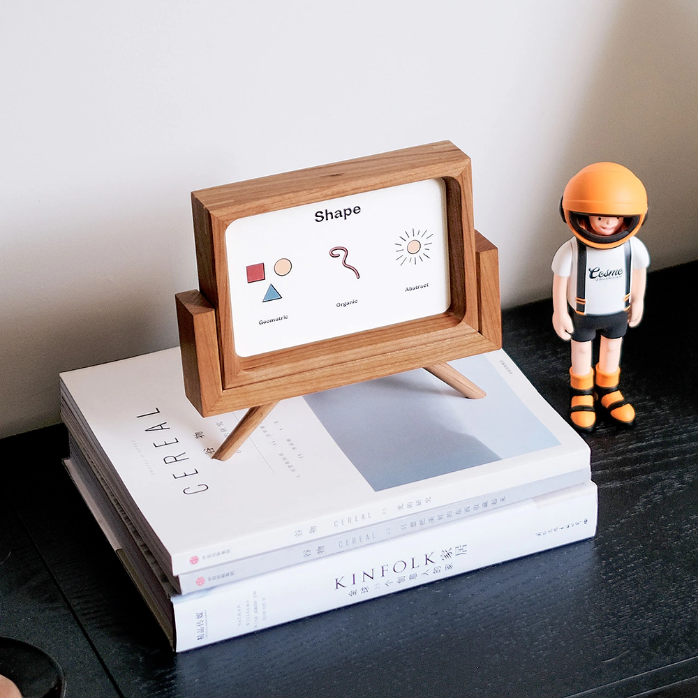 Unique TV Shaped Wooden Photo Frame .The appearance resembles a TV with a bracket, with three solid support rods at the bottom forming a triangle that is stable and not easy to collapse. The photo frame is designed with an inner circle and outer square, bidding farewell to monotony.