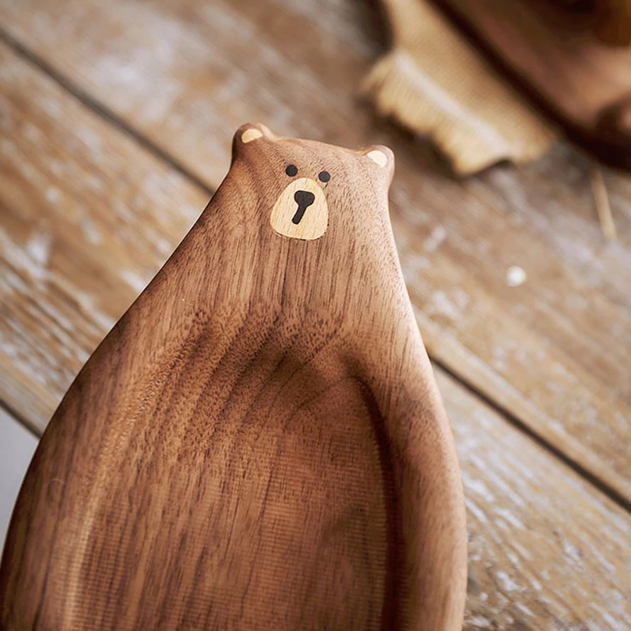 Personalized Wood Bear Tray, Handmade Tray For Food Storage, Creative Wooden Animal Plates. Adorable Bear Serving Board – Wooden – Hand-polished Smooth Surface.