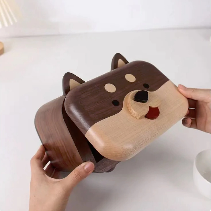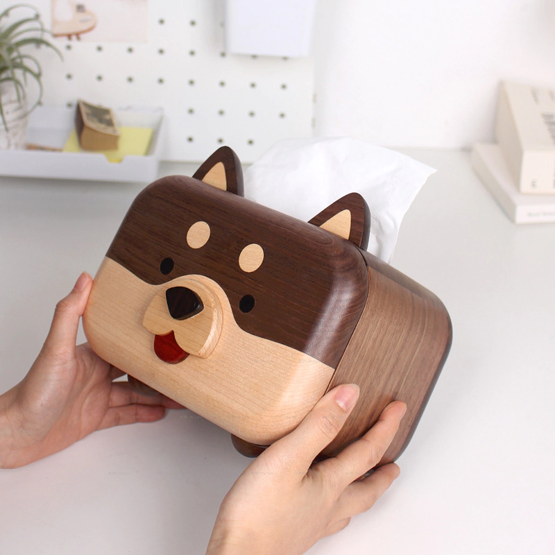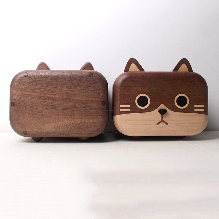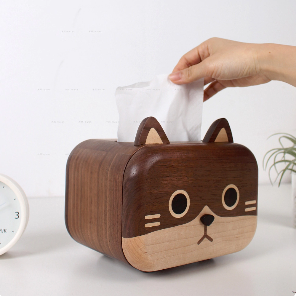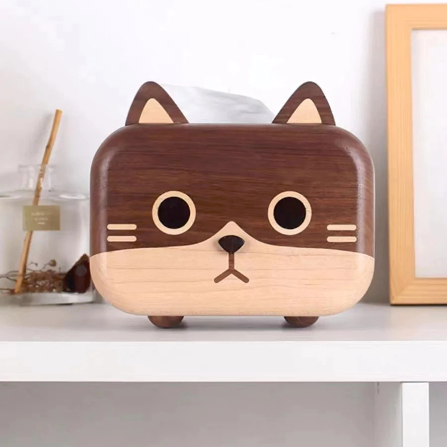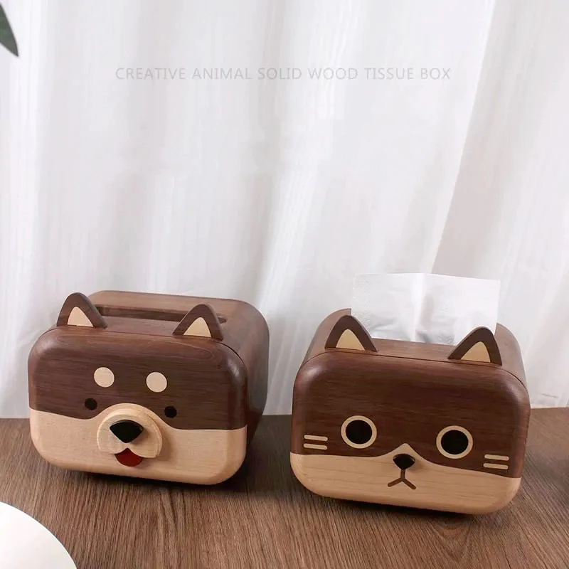 Wooden creative cute tissue box,The dog & cat shape tissue Box is a stylish and functional addition to any room. Crafted from high-quality black walnut wood and maple wood.