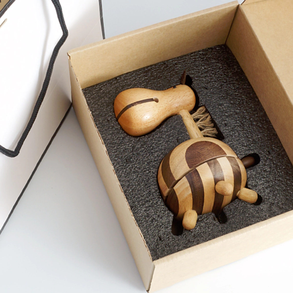 The wooden music box is made of natural wood, and the well-designed Animal Shapes is simple and art.